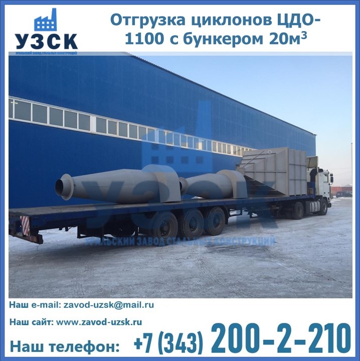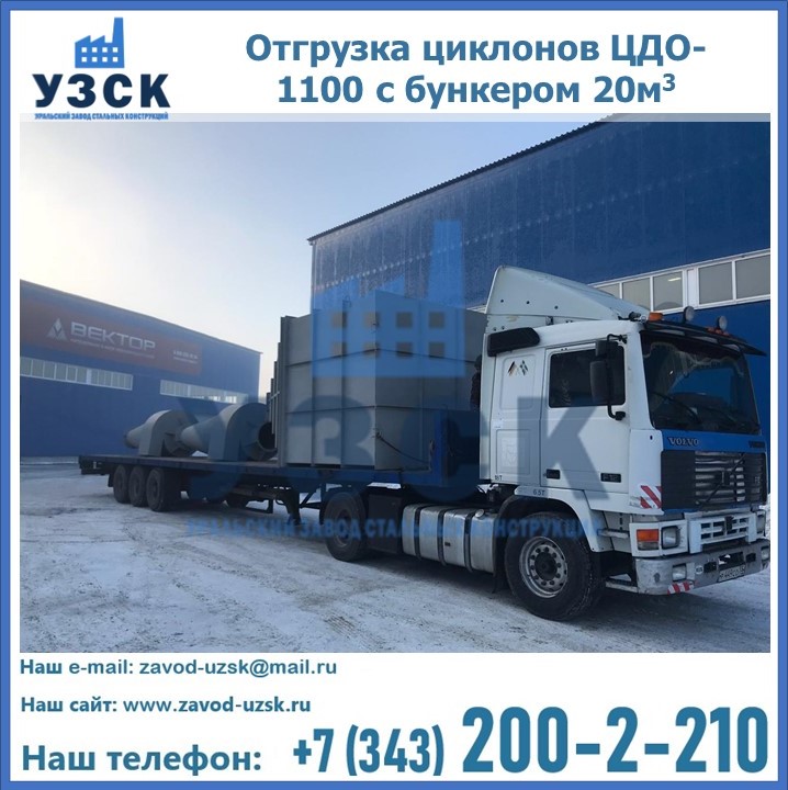 Циклоны ЦДО-1100 с бункером на 20 кубов были отгружены в декабре 2018 года в г. Новосибирск Новошахтинск.