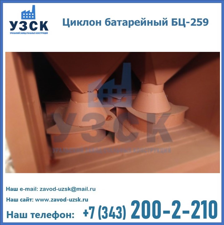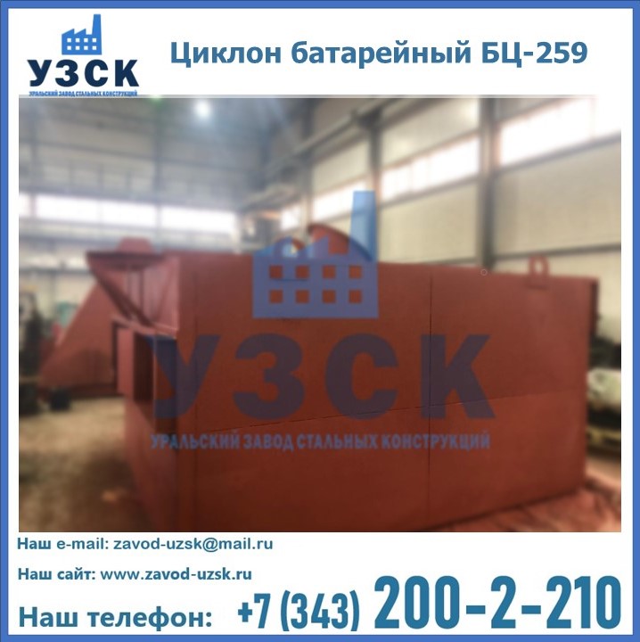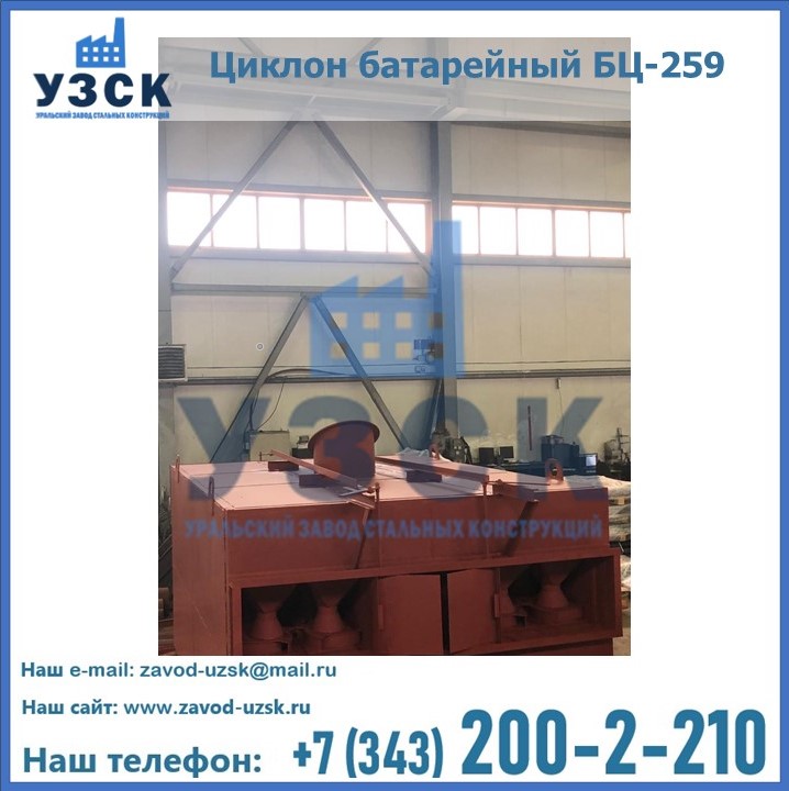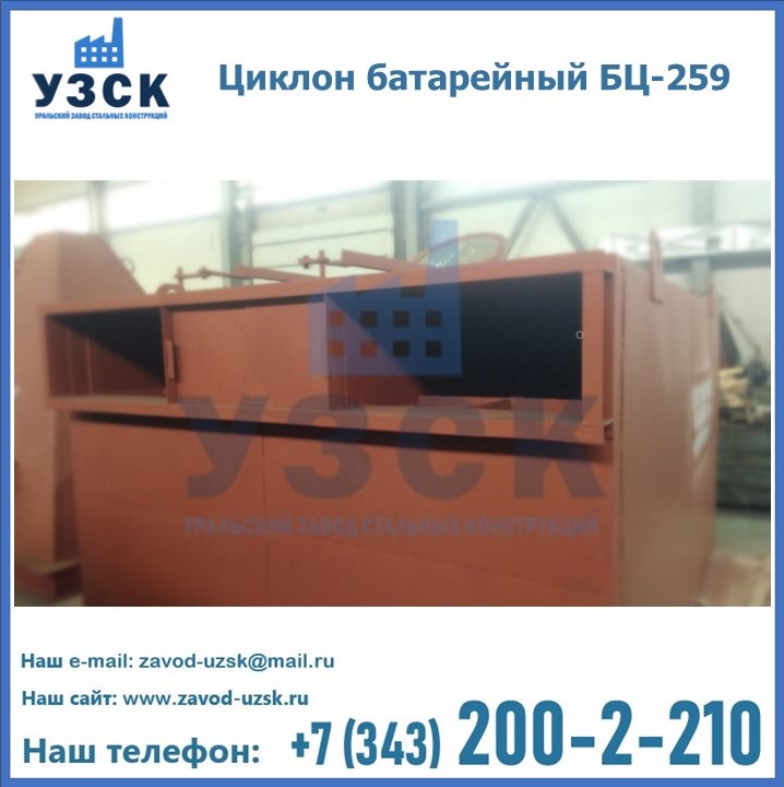 Приобрести качественное оборудование, в том числе, циклоны БЦ-259, можно в компании УЗСК в Новошахтинске. Мы предлагаем долговечную и надежную продукцию по приемлемой цене. Заказать и купить циклоны или другие изделия высокого качества можно через сайт Уральского Завода Стальных Конструкций, или позвонив по указанному в разделе «Контакты» телефону.
