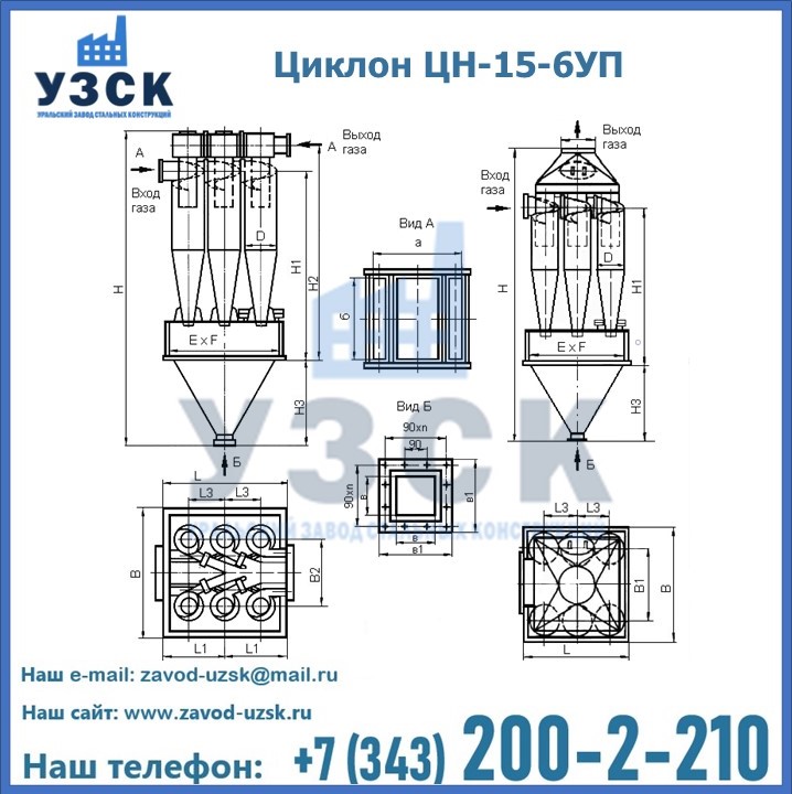 | ЦИКЛОН ЦН-15-600х6УП | 1900 | 1900 | 1102 | 406 | 1100 | 680 | 200 | 310 | 2640 |