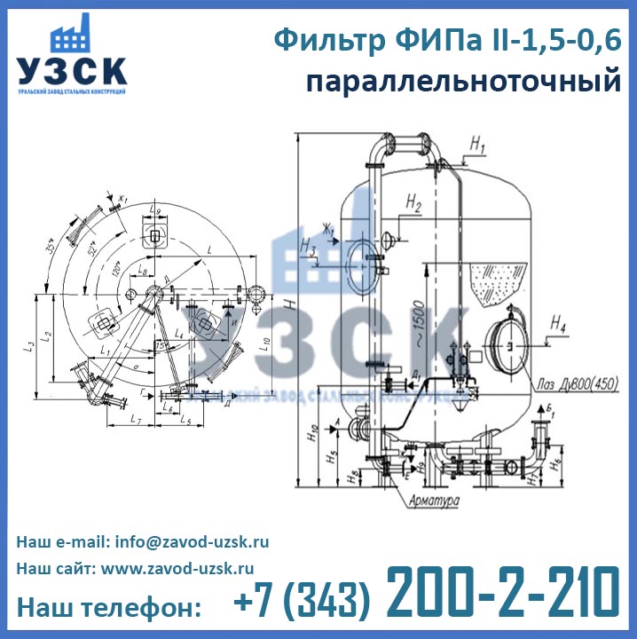 Цены фильтра ФИПа 2 ступени 1,5-0,6 формируются в соответствии со множеством факторов, таких как материальное исполнение, тип распределительных устройств, требуемая комплектация, необходимости доставки и т.д. Для расчета цены фильтров ФИПаII-1,5-0,6 в Новошахтинске обратитесь в отдел продаж Уральского Завода Стальных Конструкций по координатам, указанным в разделе «Контакты».