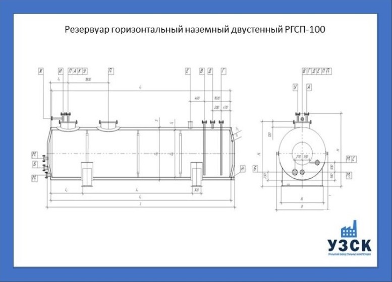 РГСн-100: горизонтальный резервуар одностенный наземного расположения;